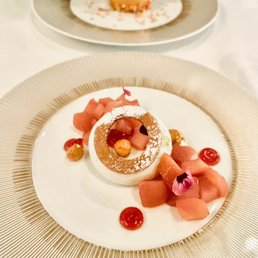 This spot was highly recommended to me so, of course, we had to try it for our anniversary. We had reservations about a month in advance. It was relatively full for a Wednesday night dinner. There were seldom any open tables while we were there. Parking was pretty easy as they have a small lot right outside in the plaza. Ambiance of the restaurant was dim, cozy and romantic. Perfect for a date or intimate group dinner. Service was a delight. The food was incredible. We had: - bread rolls to start (comes with the meal) - cappes (small bites) - heirloom salad - seared scallop appetizers - duck breast - wagyu rib eye - panna cotta - soufflé - they surprised us with a lemon cake for our anniversary and there was additional bites of desserts to follow with the bill Everything was incredible, especially the scallops. Wow. I don't think there was anything for us to nitpick even if we wanted to. We'll definitely be back and would highly recommend this spot.